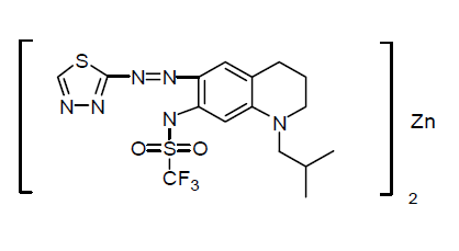 TFDI; N-(1,3,4-thiadiazol-2-ylazo)-1-isobutyl-1,2,3,4-tetrahydro-quinolin-7-yl-C,C,C-trfluoro-methanesulfonamide Zinc chelate